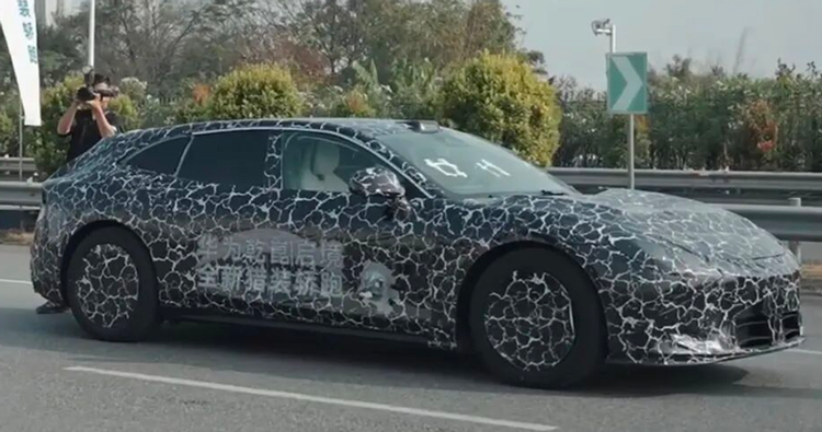 从外观来说,新车拥有较低的前盖,两侧微微隆起,呈现出流线动感的设计,同时新车配备有大尺寸的轮圈,顶部带来了激光雷达。整车拥有较大的轴距,车顶提供全景天幕。车尾整体向内收拢,猎装风格,车内的座椅也是一体式的运动风格,符合我们对传统猎装轿跑的定义。