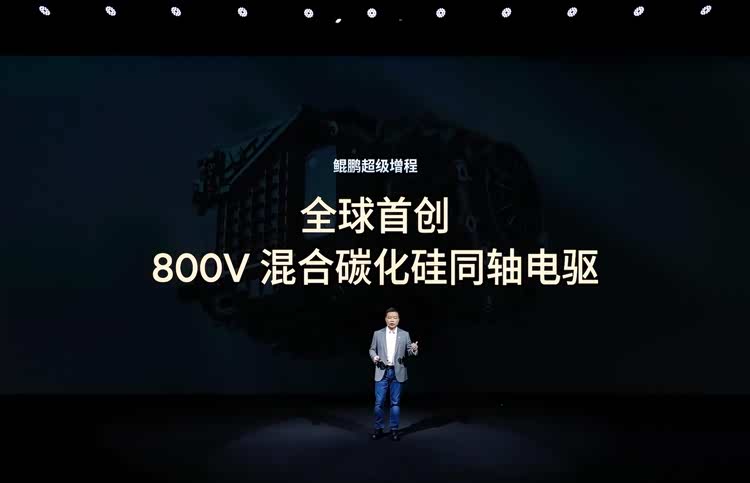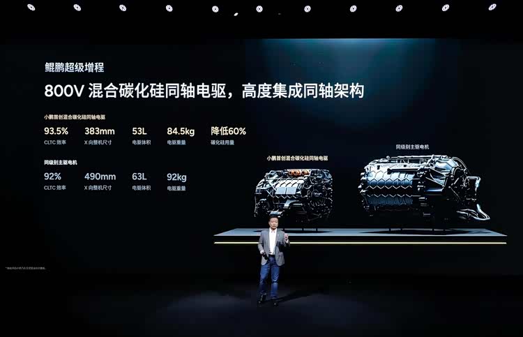 「鲲鹏超级增程」的驱动电机,目前采用的是800V混合碳化硅同轴电驱。