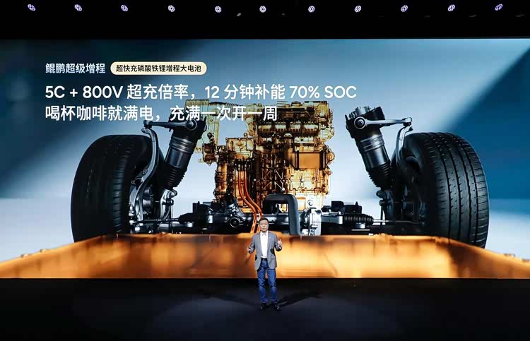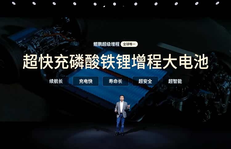 首先,「鲲鹏超级增程」的核心逻辑是建立在『增程车本质是一台优秀的纯电车加一副聪明的增程器』认知之上。而实现的方式,则是依托小鹏汽车在纯电领域十一年积累的能耗管理、充电速度、电池安全等技术经验,构建『电为主、油为辅』的动力架构。