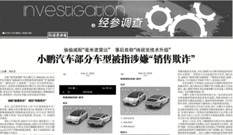 12月30日,《经济参考报》刊发题为《偷偷减配“毫米波雷达”事后自称“纯视觉技术升级”小鹏汽车部分车型被指涉嫌“销售欺诈”》的调查报道。