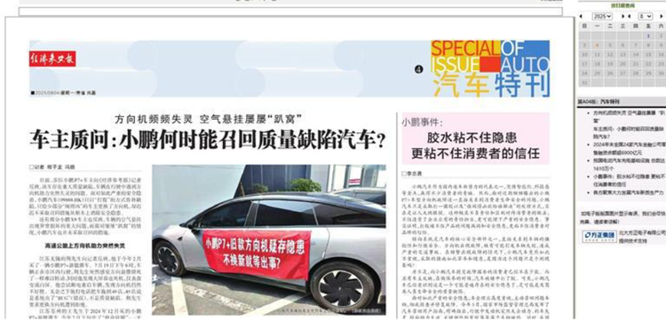 值得注意的是,这已经不是小鹏第一次被央媒批评了。就在今年8月,《经济参考报》就连发三篇报道,揭露小鹏P7+车型存在转向机安全隐患。