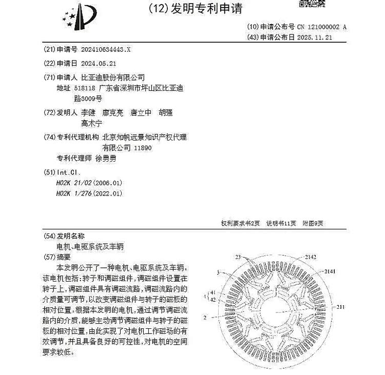●比亚迪可变磁通电机