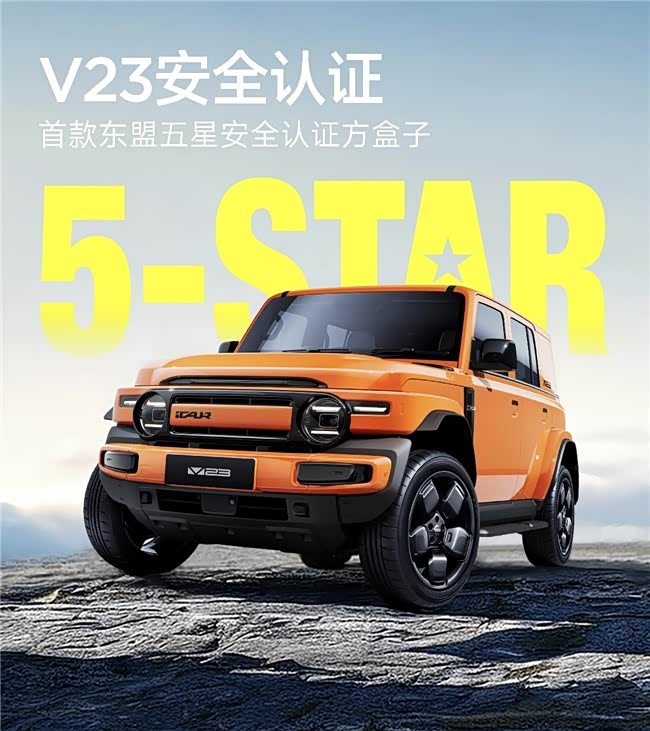 12月26日,东盟新车安全评鉴协会(ASEAN NCAP)公布了最新一轮新车测试结果,iCAR V23(海外名称:iCAUR V23)以91.02的综合得分斩获最高五星安全评级,成为获得ASEAN NCAP认证的首款“五星方盒子”车型。