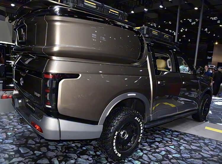 车身尺寸方面,新车长宽高分别为5527/1960/1950毫米,轴距为3300毫米;货箱长宽高分别为1520/1600/550毫米;车身长度相比先期上市车型增加7毫米,为车内空间与货箱装载提供了充足保障。车尾部分,配备贯穿式高光饰板连接立体尾灯组,货箱尾门上清晰标注“Frontier Pro”车型标识,下方保险杠集成了新增的后外置拖车钩,硬派气息十足。