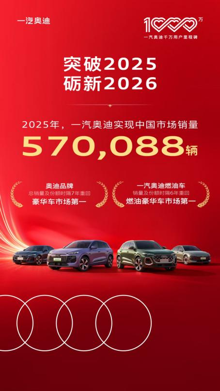 在2025年收官之际,中国豪华汽车市场正经历一场深刻的结构性变革。电动化与智能化浪潮持续冲击传统竞争格局,消费需求日益多元,市场分化进一步加剧。在这样的背景下,一汽奥迪于年底交出了一份令人瞩目的业绩答卷:中国市场销量达570,088辆,全年燃油车市场份额时隔6年重回燃油豪华车市场第一。与此同时,奥迪品牌总销量及份额更是时隔7年重回豪华车市场第一。