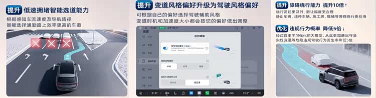 OTA 4.0升级后,传祺向往S7全面释放R6大模型的核心实力。首先是极智的安全辅助能力,新增FCTB前向横穿制动、RCTB后向横穿制动、RAEB后向自动紧急制动、PMA油门防误踩四大主动安全功能,即使低速起步或倒车遇到突然窜出的行人或车辆,系统也能主动刹停;在高速路段120km/h时速下遭遇危险,同样可实现紧急制动。其次是极智的安全守规能力,系统严格遵守交通规则,绝不压实线、不闯红灯,支持自主选择变道时机与加减速风格,面对加塞更从容,施工区域提前规划绕行路线,异形障碍物识别更精准。