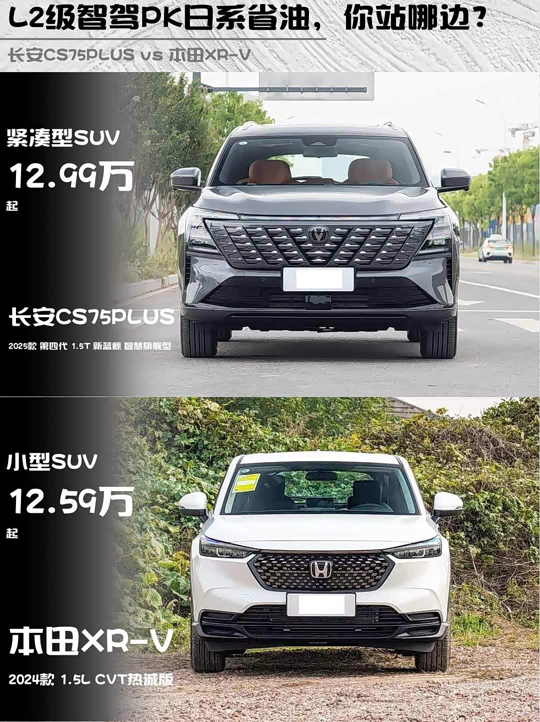 最近在选15万级SUV的朋友看过来!今天深度对比两款热门选手—— 长安CS75PLUS(参数|询价) 2025款1.5T智慧旗舰型(12.99万)和本田XR-V 2024款1.5L热诚版(12.59万),看完这篇你就知道谁才是真香王!🔥