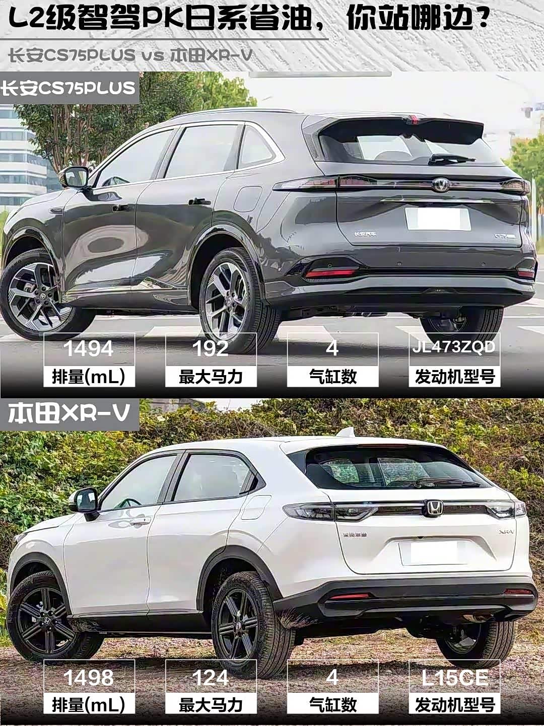 - CS75PLUS有电动感应尾门+矩阵大灯,XR-V倒车雷达都要后期加装