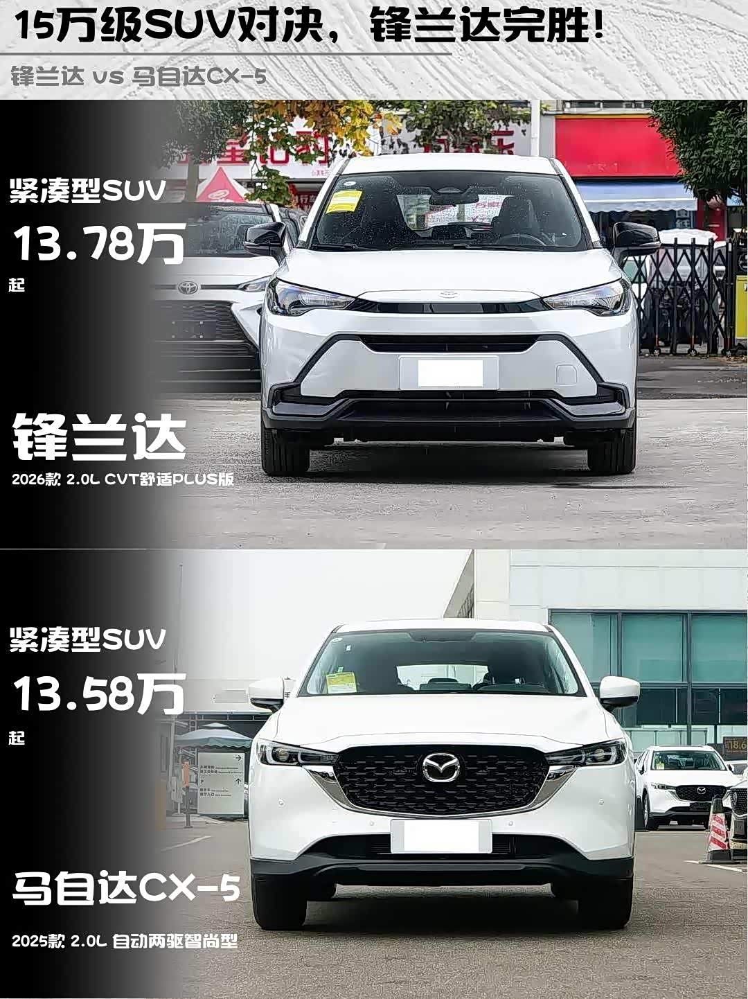 车家号·0浏览·2026-01-01 08:30 · 北京最近在15万级合资SUV里纠结疯了!锋兰达2026款2.0L CVT舒适PLUS版和 马自达CX-5(参数|询价) 2025款2.0L自动两驱智尚型,实测对比后我悟了…🚗💨