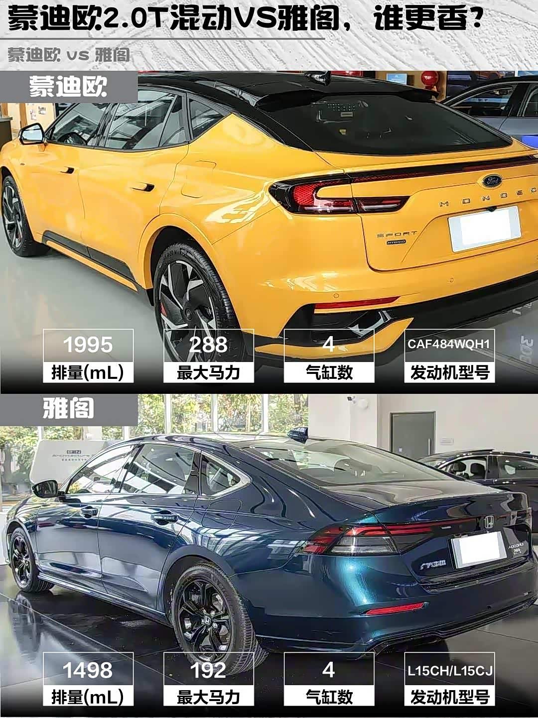 最后说个冷知识:蒙迪欧的2.0T混动加92#油就行,雅阁反而建议95#,这波属实是美系车反向教育日系了!你们会选哪辆?