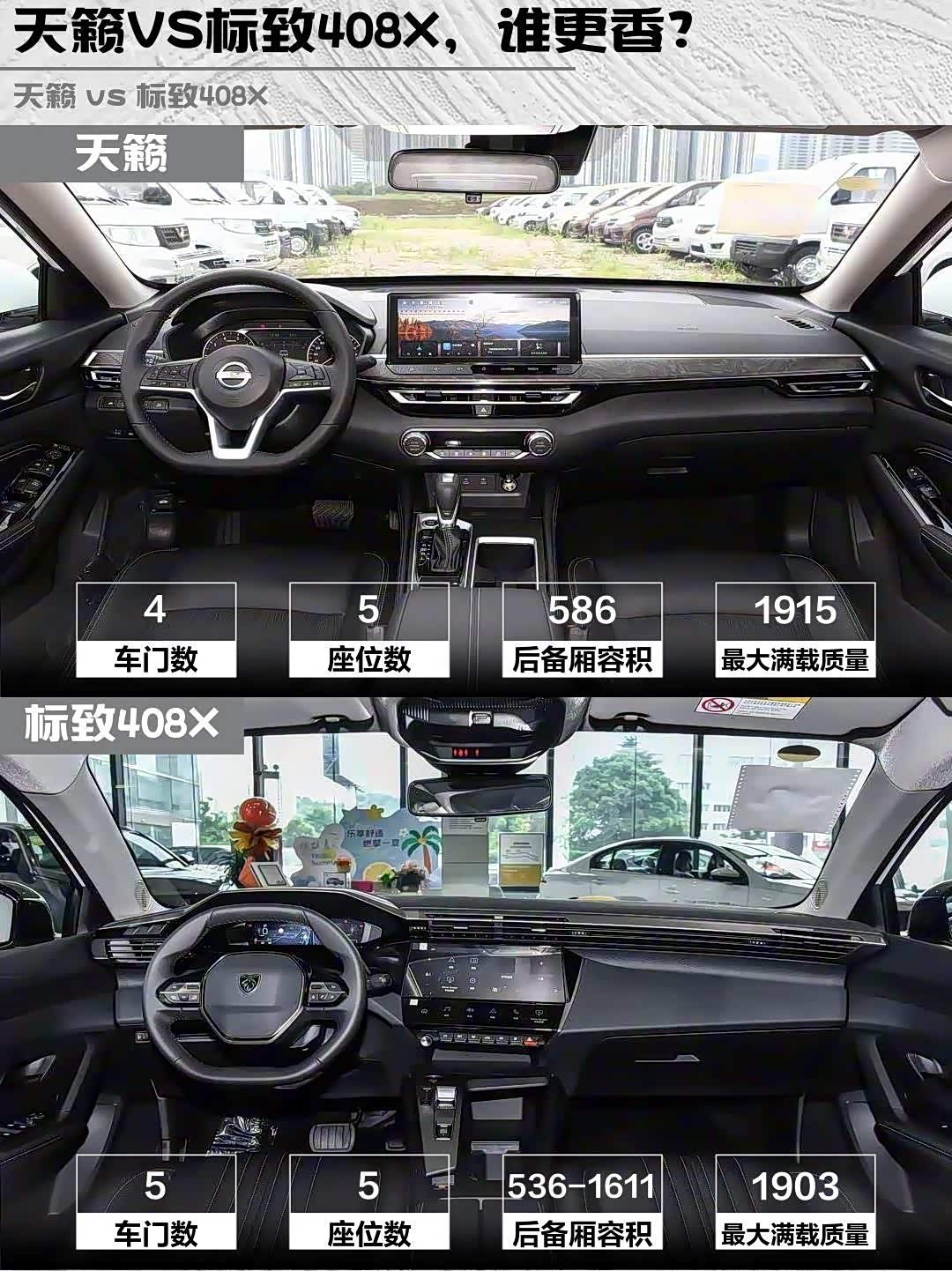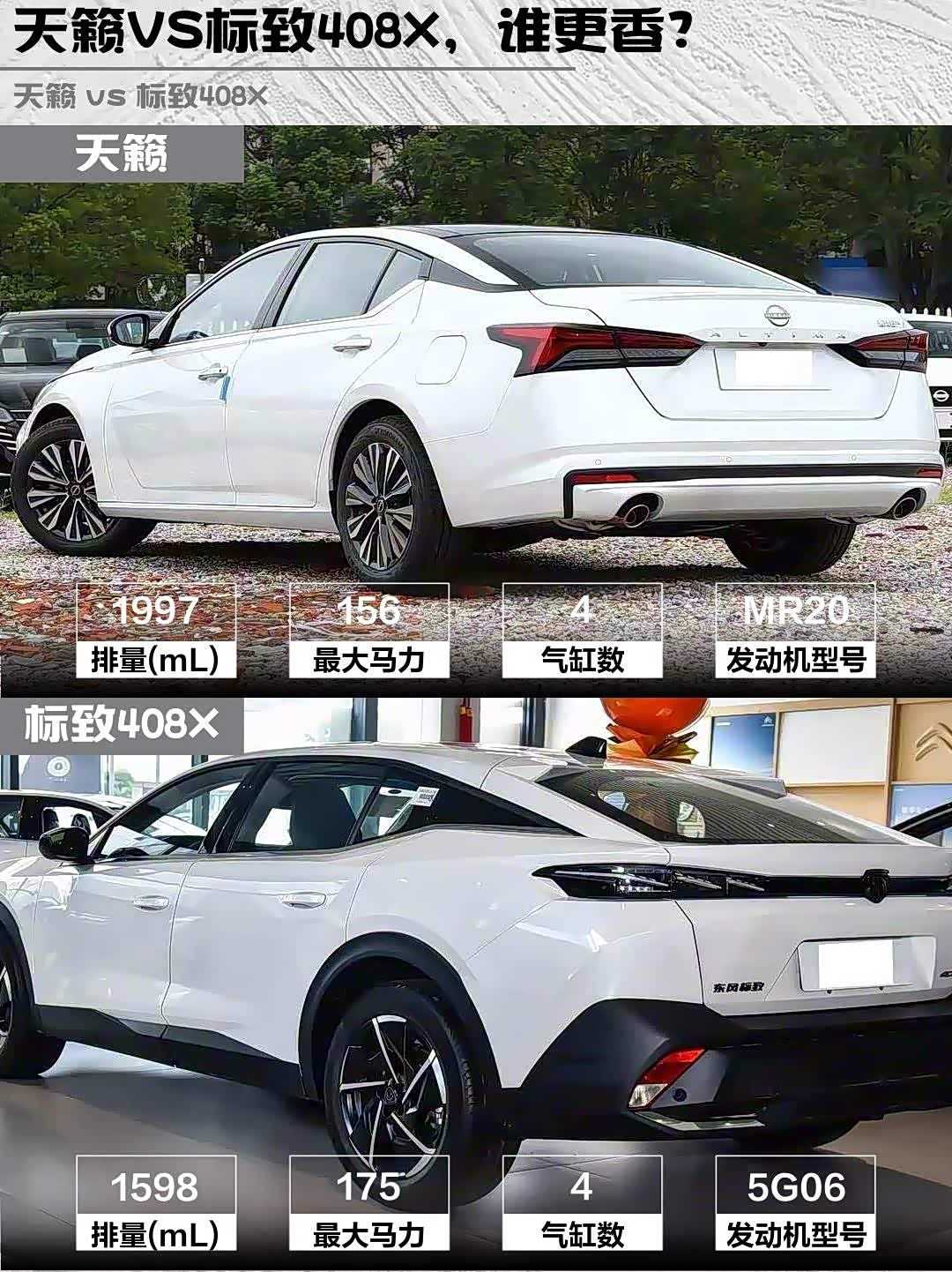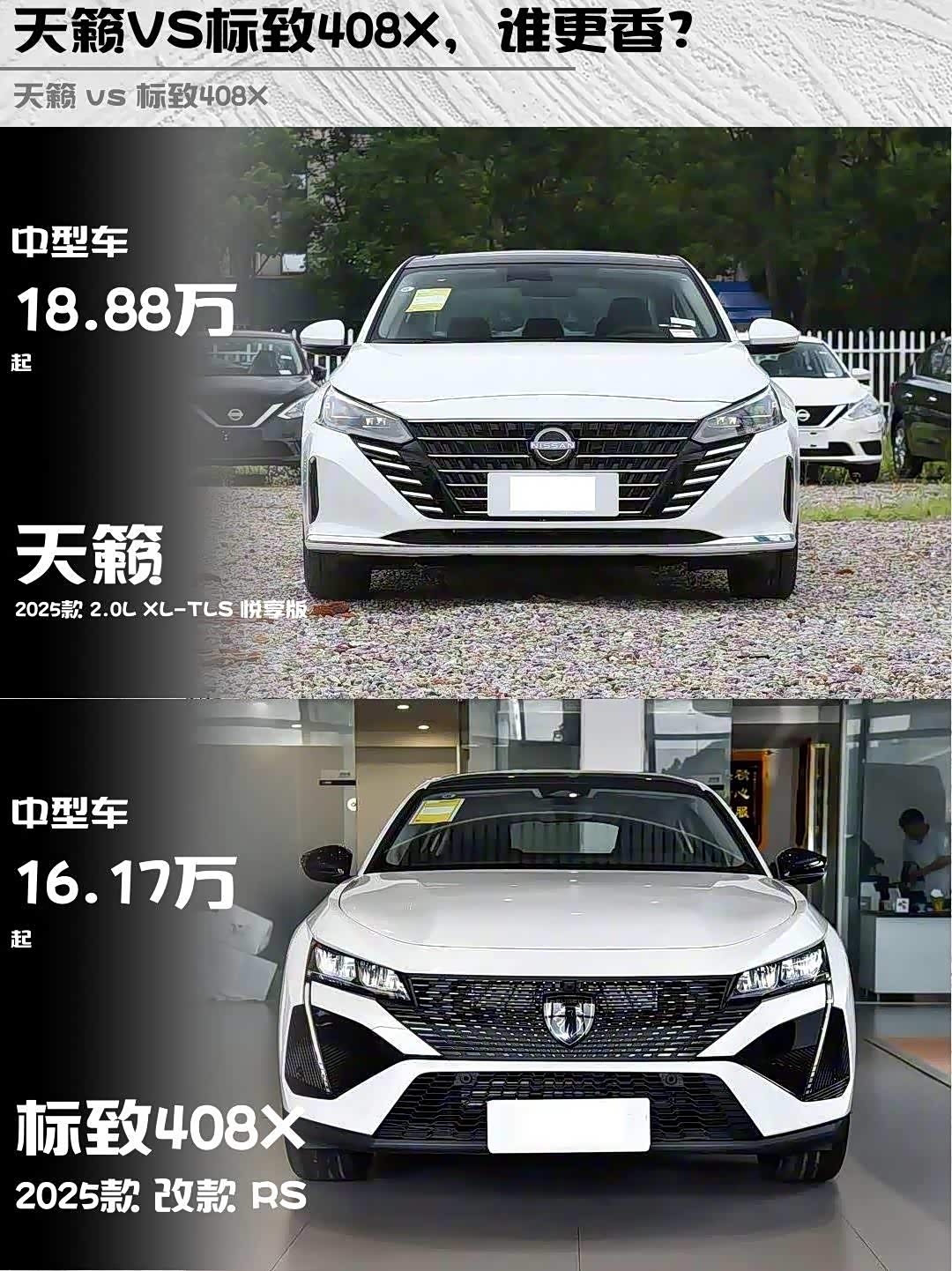 车家号·0浏览·2026-01-01 08:48 · 北京最近后台好多兄弟在问:20万预算买B级车,天籁和 标致408X(参数|询价)到底怎么选?今天直接拉出2025款天籁2.0L XL-TLS悦享版(18.88万)和标致408X 2025款改款RS(16.17万)实车对比,干货预警!🔥