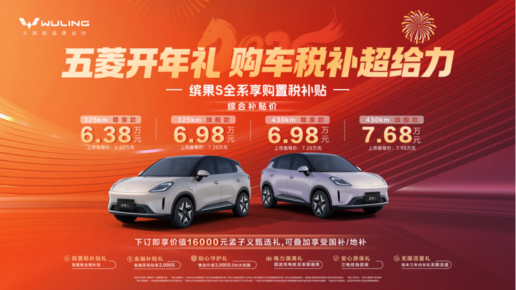 另外,针对空间更大、至高续航430km的缤果S,五菱也同样给到了购置税全额补贴,还有金融至高贴息2000元等丰厚权益。