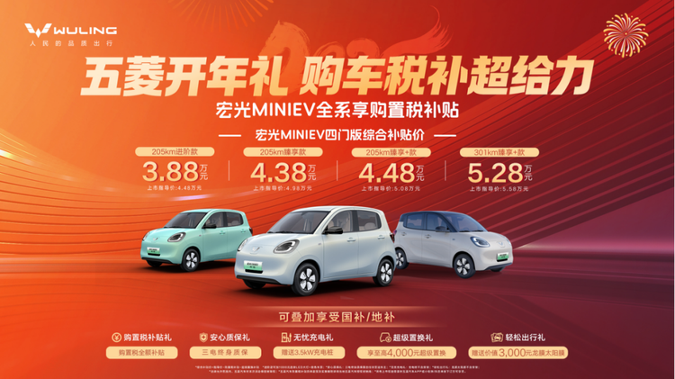 近日,五菱汽车便官宣了开年礼,包括 宏光MINIEV(参数|询价)家族&缤果家族将同时给出购置税补贴礼、超级置换礼、金融贴息礼,可谓诚意拉满。