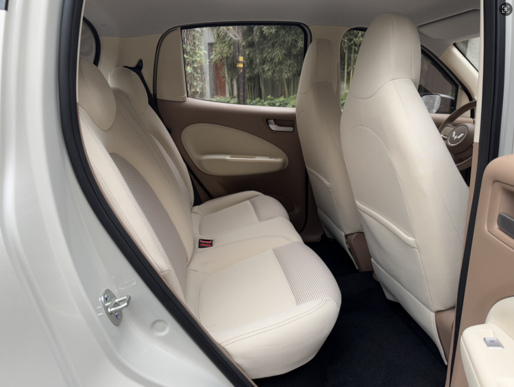 但要说更多空间亮点,还得将视线聚焦到后排。得益于四门与高得房率特性,宏光MINIEV四门版已具备“实用4座”属性,约2126cm²的后排车窗可视面积与电动升降车窗配置,也满足了后排乘员舒享体验。