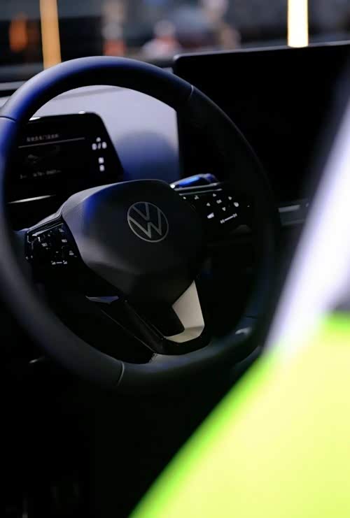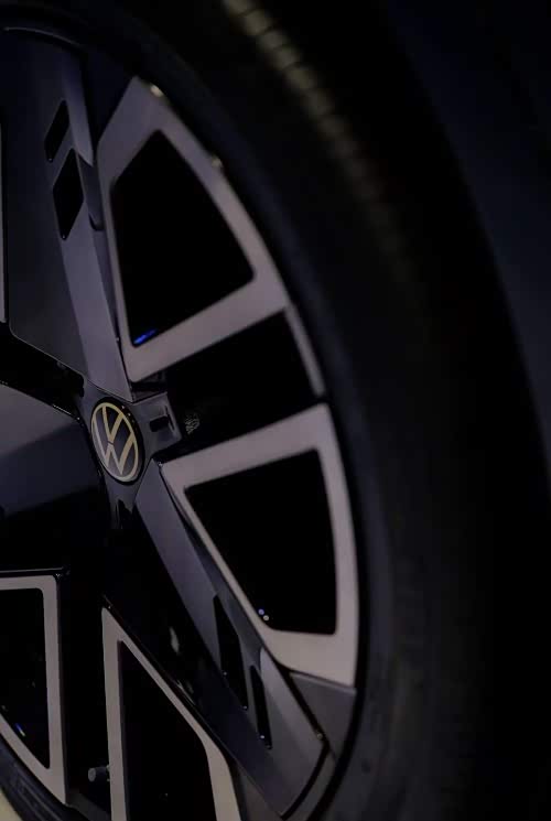 与众06最引人注目的变化,莫过于前脸上那枚熠熠生辉的金色VW徽标。这不仅是颜色的更迭,更是品牌向电动化、智能化转型的视觉宣言。整车采用“破风”设计语言,线条流畅而富有张力,贯穿式IQ.Light智能矩阵大灯与发光的金色车标相连,在解锁时呈现动态迎宾效果,赋予车辆鲜明的科技感与仪式感。
