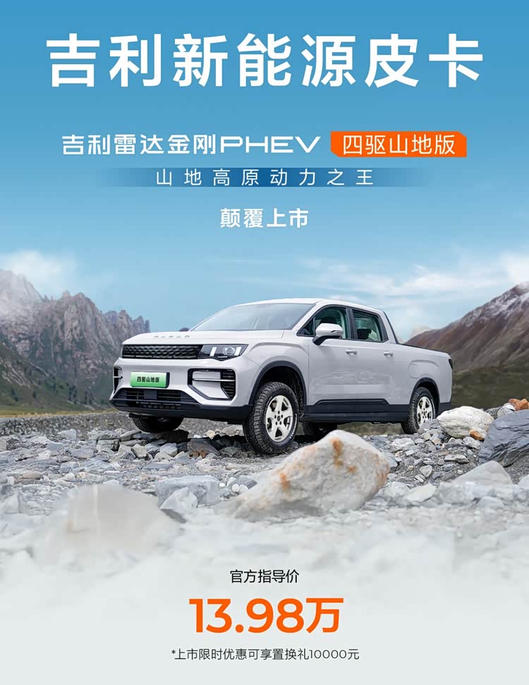 在新能源汽车市场竞争白热化的当下,场景化细分产品成为车企突围的核心路径。吉利雷达品牌精准捕捉西南西北高原山区与东北西北高寒地区的特殊用车需求,推出金刚PHEV山地版与地平线PHEV高寒版两款高性能皮卡。依托雷神EM-P超级电混系统的核心优势,两款车型在动力、舒适、安全、续航等维度实现针对性优化,重新定义特殊环境下的皮卡使用标准,为用户提供兼具实用性与高品质的出行解决方案。