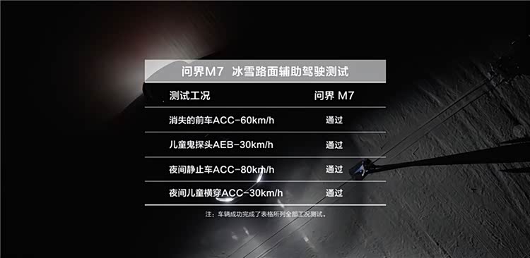此次测试的严苛性在于其系统性与场景的真实性。中汽中心从用户冬季实际用车痛点出发,设置了覆盖续航能耗、雪地操控、辅助驾驶安全等多维度的科学验证体系。而全新问界M7的亮眼表现,首先在最为直观的冰雪动态操控与极端安全挑战中得到了淋漓尽致地展现。在专门检验低附着力路面操控稳定性的系列科目中,全新问界M7成功通过30%雪面爬坡与20%对开路面坡起测试,全程平稳无溜滑;其雪面0-60km/h加速时间小于5秒,60-0km/h制动距离短于35米,优于行业主流;更以超过90km/h的速度稳健通过雪面双移线测试,展现出极强的底盘控制极限。