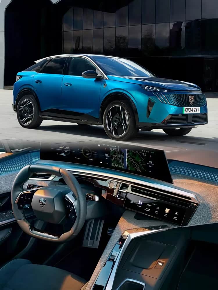 新车速评:采用轿跑SUV风格与标致新一代设计语言,外观颜值给好评,但真正的看点在于内饰,i-COCKPIT座舱设计得到全面进化,异形方向盘与贯穿式氛围灯带很有辨识度,21英寸曲面屏的显示效果不错,出风口下方还有一块屏幕。