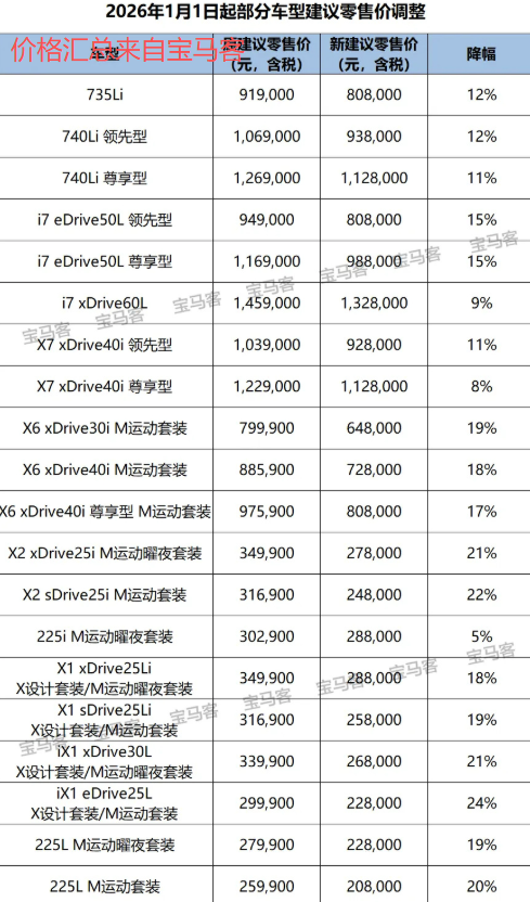 2026年宝马汽车给出了一波“王炸”,新年第1天就对旗下的诸多产品线进行了大幅度的价格调整。
