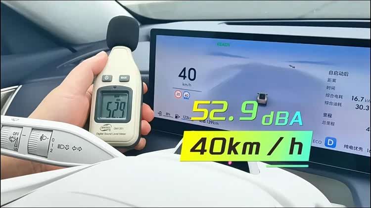 我们选择国家一级铺装标准的柏油路,关闭车窗和所有能关闭的用电设备,以定速巡航控制车速完成相关测试。