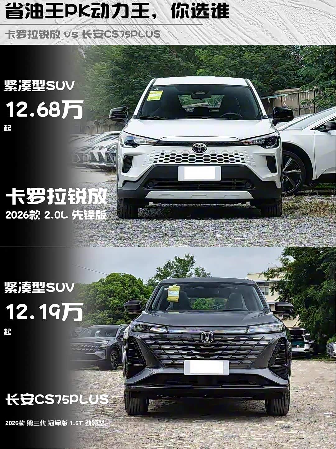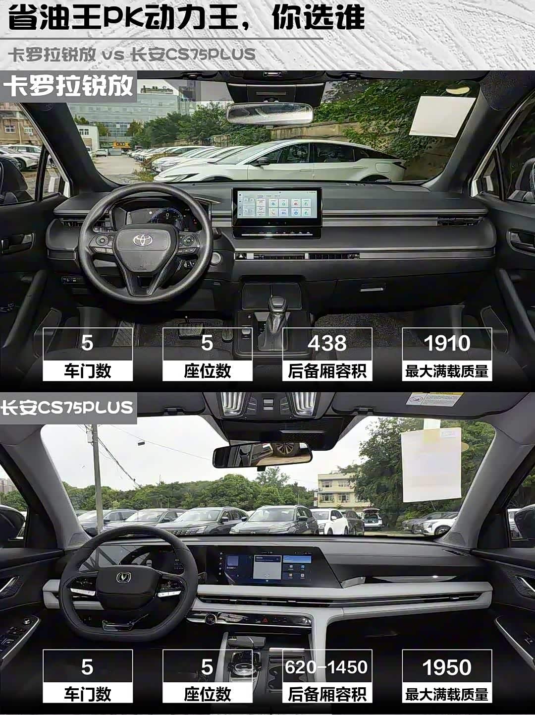 要省油耐用选卡罗拉锐放,要空间配置冲CS75PLUS!我最后选了丰田,毕竟加油站小哥都认识我这台省油王了😂 你们会pick哪台?