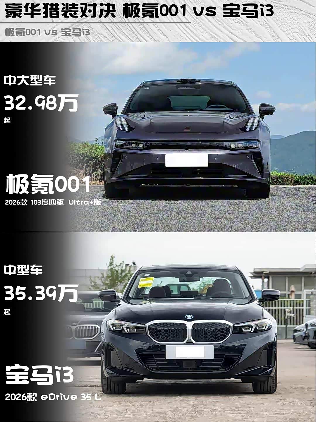 最近试驾了两台30万级纯电轿车天花板—— 极氪001(参数|询价) 2026款103度四驱Ultra+版和宝马i3 2026款eDrive 35 L,作为技术控必须来波硬核对比!🔥