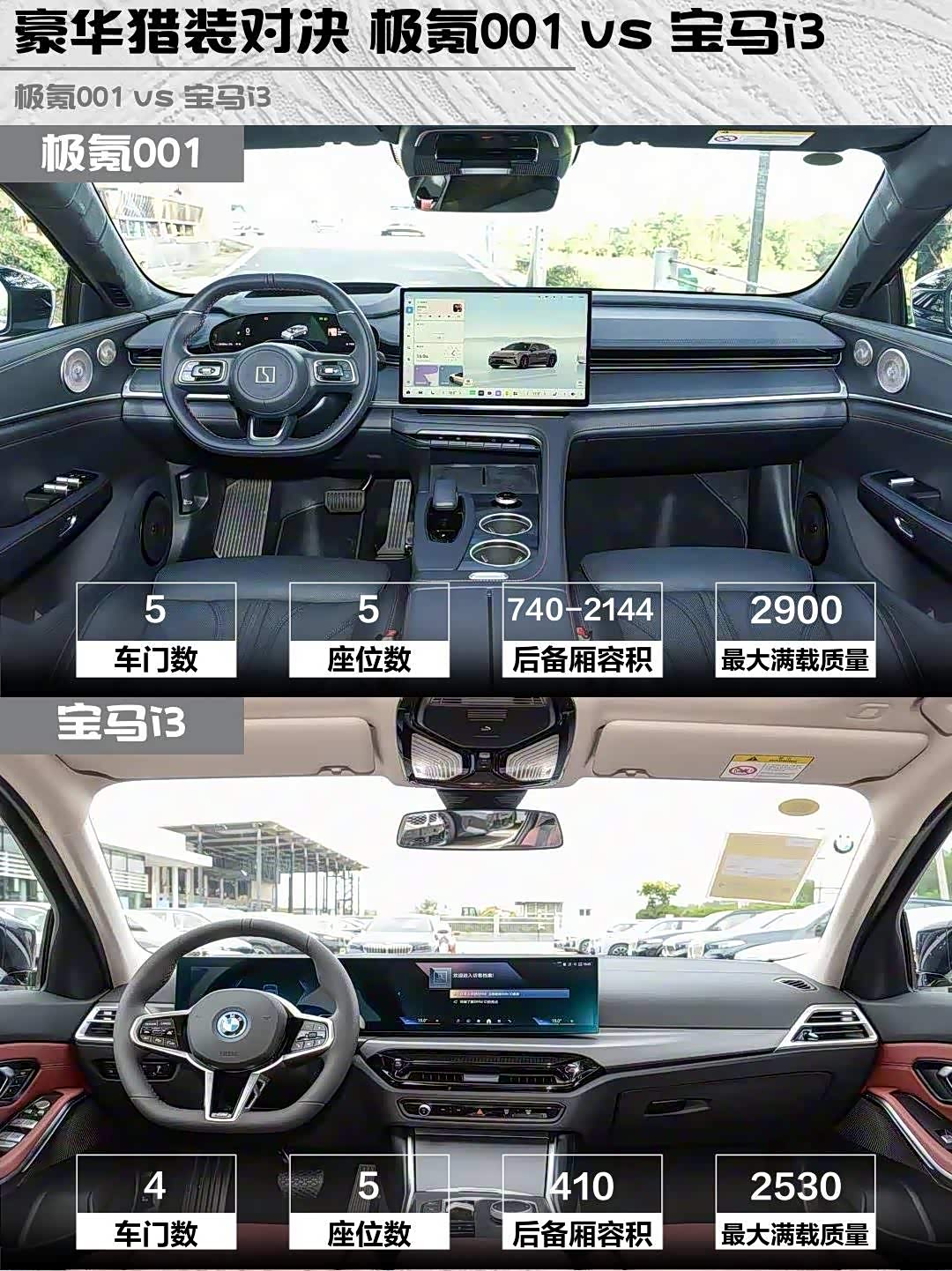 要性能炸裂+配置拉满选极氪001,实测2.91秒加速和星空顶带来的爽感绝对值回票价;更看重品牌调性和操控细腻度就选宝马i3,后驱的驾驶乐趣确实独一份。你们会为极致性能买单,还是选择传统豪华品牌的驾驶基因呢?