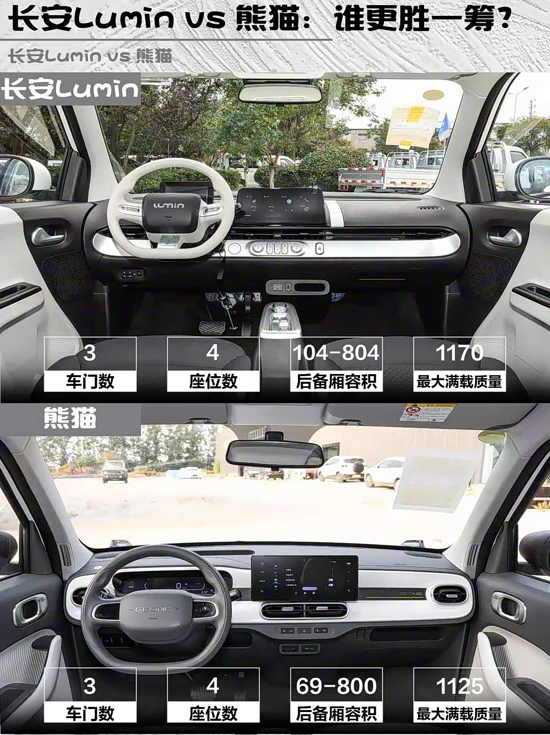 长安Lumin就像行走的马卡龙🍬,酷爱米色车身+隐藏式门把手,圆润大灯萌到犯规!熊猫卡丁则是运动少年,原厂尾翼+撞色设计,开出去像从卡丁车赛场开出来的。实测回头率Lumin略胜一筹,但熊猫的改装潜力更大~