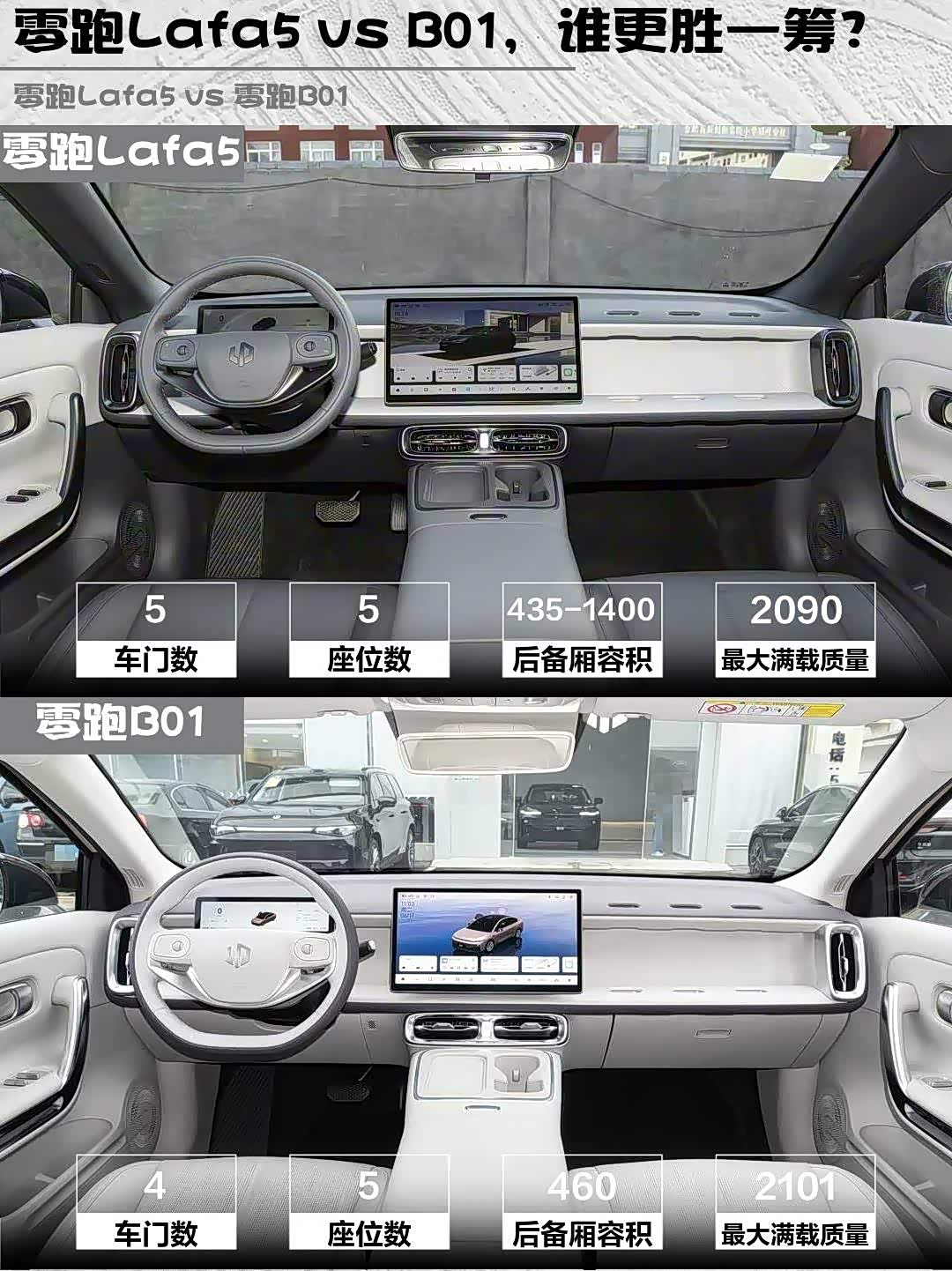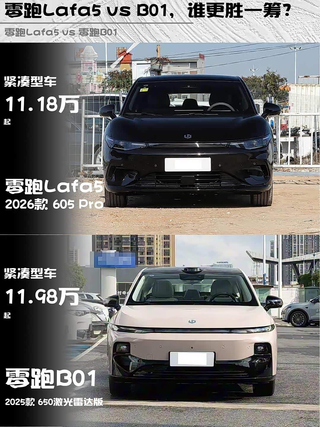 最近深度体验了 零跑Lafa5(参数|询价) 2026款 605 Pro和零跑B01 2025款 650激光雷达版,两款都是11万级纯电市场的热门选手,但性格差异比想象中更大!作为都市通勤党+周末自驾爱好者,实测对比干货分享👇