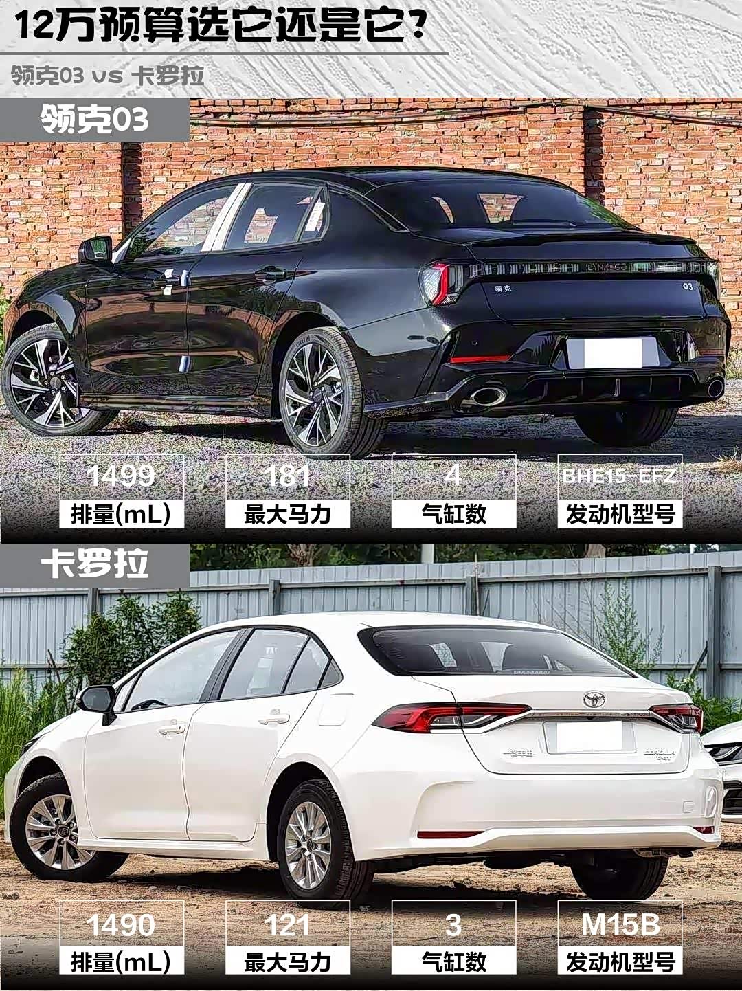 车家号·0浏览·2026-01-02 08:47 · 北京最近后台好多兄弟问我:12万预算买运动家轿, 领克03(参数|询价)和卡罗拉到底怎么选?今天直接拿2026款领克03 1.5TD DCT Pro和2024款卡罗拉1.5L先锋版硬核对比,看完保你不再纠结!🔥