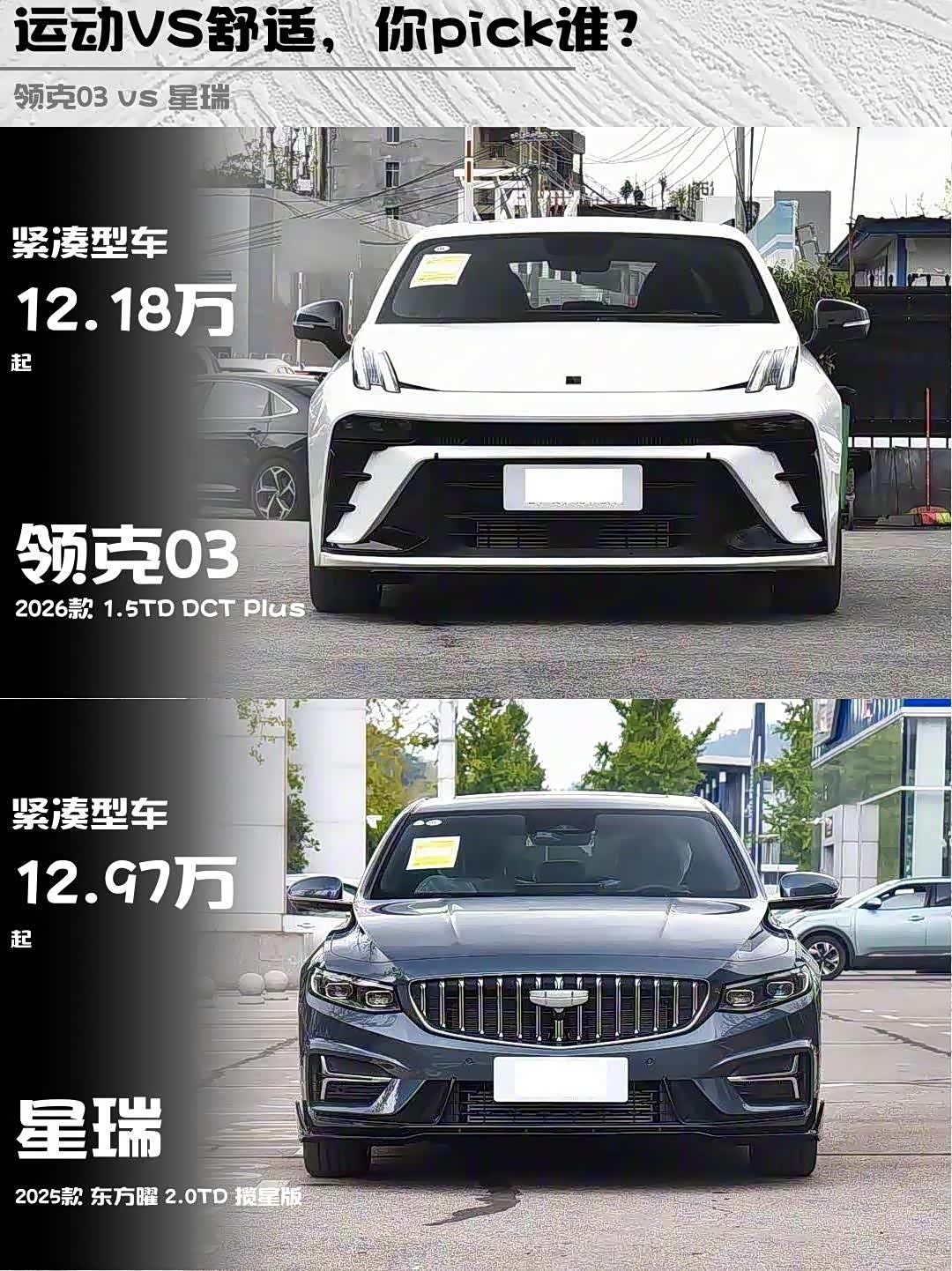 车家号·0浏览·2026-01-02 08:56 · 北京最近在12万级家轿市场纠结到秃头!😫 领克03(参数|询价) 2026款1.5TD DCT Plus和星瑞2025款东方曜2.0TD揽星版深度对比后,发现这对"性能控vs全能生"CP太有意思了!