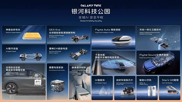 在智能化方面,从“大算力、大模型、大数据”,再到“天地一体”的出行生态,吉利已经全面构建了 AI 科技的新基座。在算力方面,星睿智算中心2.0进一步升级,算力资源超万卡级别,目前综合算力提升到23.5 EFLOPS,在中国车企中排名第一;在座舱方面,Flyme Auto 2真正实现了情感交互、全维沉浸的AI座舱体验,可为用户提供实况桌面、Alive壁纸、桌面大卡片、全新小窗等一系列创新体验;在大模型方面,吉利星睿AI大模型是全球首个汽车行业全栈自研全场景AI大模型的,涵盖情感交互、AI用车、AI出行、AI娱乐、辅助驾驶等多个实用化生活场景,实现用车场景模型全覆盖;此外,吉利星座也已完成一期组网部署,在轨卫星达到64颗,吉利银河产品将可通过卫星物联通信技术,实现“永不失联”。2025年,吉利还率先发布了行业首个智能汽车全域AI技术体系,并陆续将全域AI融入“智驾域、动力域、底盘域”,例如千里浩瀚智能安全辅助驾驶系统、AI云动力2.0、AI数字底盘等这些AI智能化的核心技术成果,已率先在吉利银河旗下产品上搭载应用。