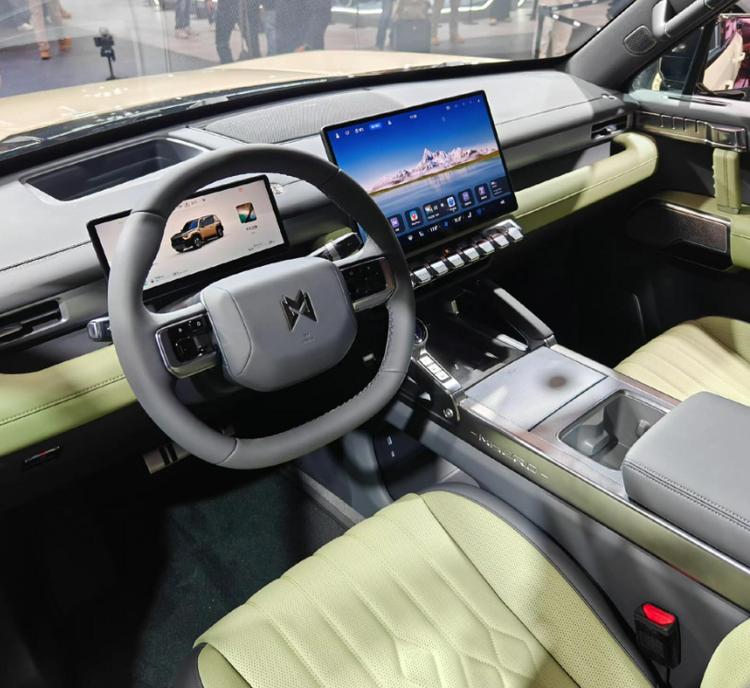 内饰设计亮点不少,整个内饰的豪华感营造不错,车内有着大量的真皮材质,也拥有双悬浮大屏的构造,电气化程度很高,用料也特别讲究。此外,还匹配了15.6英寸的中控大屏,内置的居然还是鸿蒙OS智能车机系统,非常潮流。至于高阶智能驾驶辅助系统,同样是一应俱全。这款猛士M817还搭载了华为乾崑智驾系统,其实就是华为全家桶的设计,全景大天窗,豪华车内氛围灯,丹拿音响更是一应俱全。