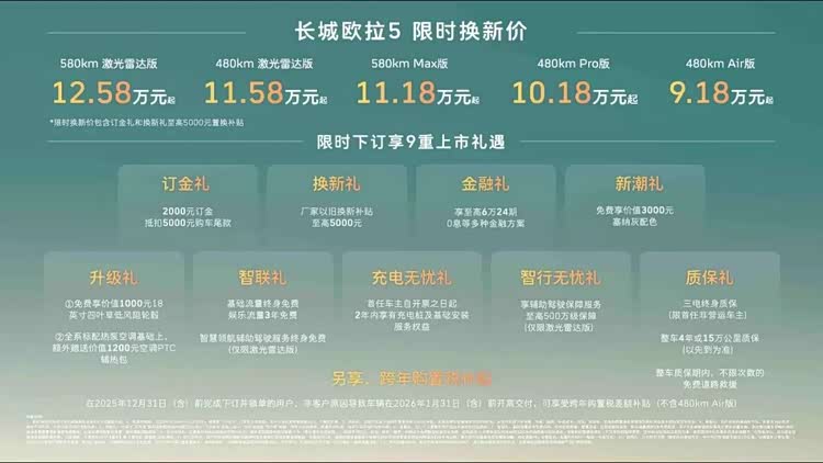 在上市之日起至2025年12月31日,用户下订并锁单还能享受金融礼、智行无忧礼在内的9重上市好礼,以及跨年购置税补贴(不含480km Air版)等丰厚购车权益。