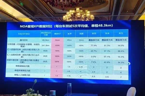 腾势方面透露,其辅助驾驶团队早在三年前就启动了研发测试工作,并在2000人团队的共同努力下实现了“全栈自研”。此外,腾势更是在交流会上展示了腾势N7与其他厂商的高速NOA测试对比图片。