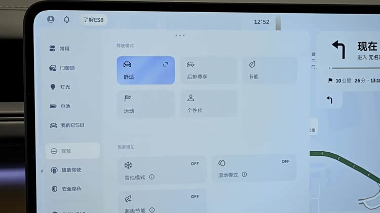 第二个:动能回收调教做得很不错,很多车企为了让自己的车看着续航好看点,都会在动能回收这边下功夫,让续航看着掉得没那么快,却完全忽略了车主的驾驶感受,但是,蔚来ES8却不一样了,专门对动能回收进行设计,你开动能回收时,不会出现后排车主头晕,顿挫感特别强烈的情况,说到底,就是防晕车做得还不错。