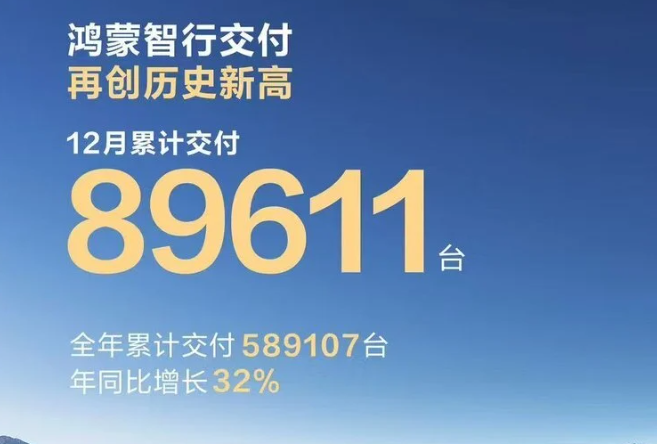 问界仍是支柱,12月交付57778辆,全年422916辆;智界连续三月交付破万,享界12月8800辆创新高。