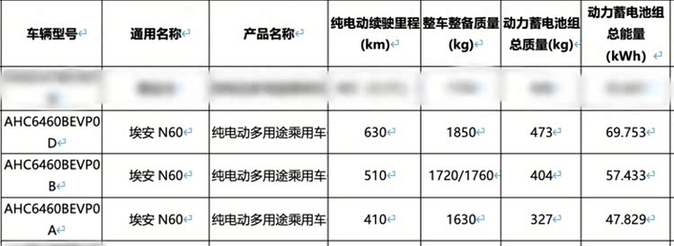 近日,广汽埃安N60的最新产品信息从工信部第402批新车申报目录中曝光,除此前公布的外观设计外,新车在电池容量以及续航里程信息获得了最新曝光,同时确认新车搭载单电机系统,具有两种动力版本,将推出三种续航版本供消费者选择。凭借前卫设计、丰富配置及多元续航布局,有望进一步完善埃安品牌的纯电产品矩阵,未来上市后将与比亚迪宋PLUS EV等车型一较高下。接下来,我们一起来分析分析吧。