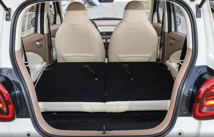 五菱宏光MINIEV 301km 臻享 +的车身长宽高为3256×1510×1578mm,轴距2190mm,同样为5门4座,后排腿部空间仅半拳左右,高个子乘坐局促,常规后备箱123L,放倒后可达 745L,载人载物灵活性还是比较强的,但是因为数据和零跑T03差距表现,从两款车的实际乘坐来看,很显然零跑T03 更为舒适。