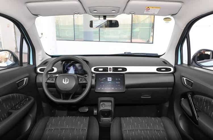 五菱宏光 MINIEV 301km 臻享+版的内饰为织物座椅 + 焦糖奶油配色,整体的风格温馨耐脏,但是它的中控仅配备 7 英寸液晶仪表 + 8 英寸中控屏,也仅支持蓝牙连接和手机 APP 远程控制,功能整体来说还是很基础的,并没有零跑T03所具备的不错科技感。