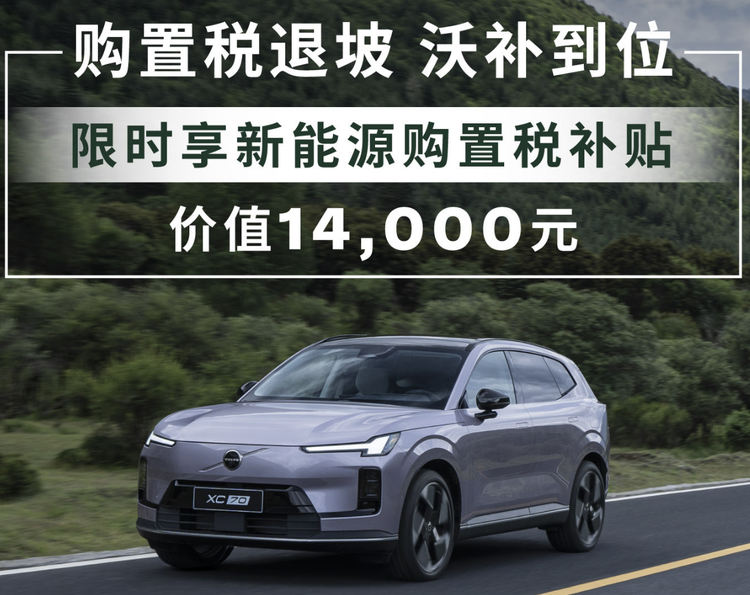 在1月1日- 1月31日购买沃尔沃XC70,可享受价值14000元的购置税补贴。