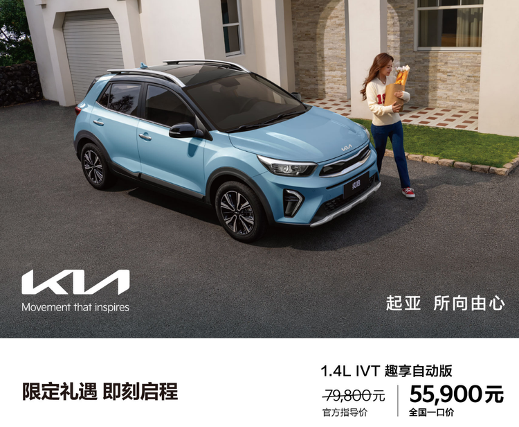 1、起亚奕跑:1.4L IVT趣享自动版原价7.98万,全国一口价5.59万元,直降23900元;