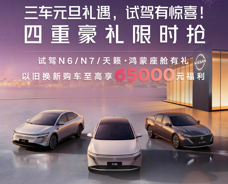 1、日产N6:可享1000元优惠券、99元超值购价值3000元组合驾驶辅助保障权益、5000元置换补贴;
