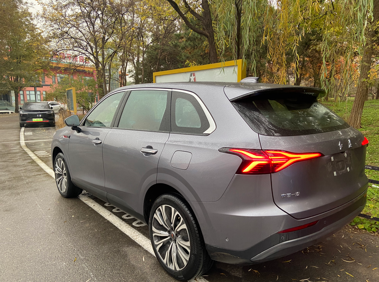 体现在日常用车上,这就是极致的经济性。作为一台整备质量超过2.1吨(2160kg)的中大型SUV,红旗HS6在WLTC工况下的最低荷电油耗仅为5.1L/100km(145智混版),综合油耗甚至低至0.4L/100km(240智混版)。更难能可贵的是,它仅需加注92号汽油,真正实现了“吃粗粮、干重活、跑得远”。