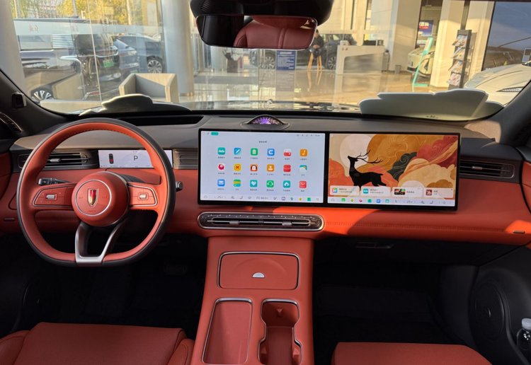 但真正的视觉黑科技在于其搭载的AR-HUD增强现实抬头显示系统。不同于普通HUD在强光下的一片模糊,红旗HS6的这套系统拥有高达12000尼特的超高亮度。这意味着即便是在正午烈日直射的沿海公路,或者进出隧道光线剧烈变化的瞬间,导航指引、车速信息依然清晰锐利地悬浮在前方路面上。配合30英寸的超大显示面积,驾驶者无需低头,路况信息尽收眼底,极大地提升了驾驶安全性与从容感。