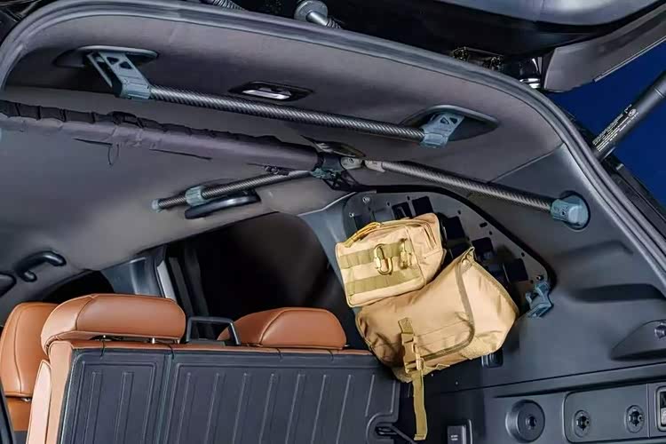 内饰上,该车主要是对后备箱内部进行实用性改造,主要是增加了更多的拓展架,满足不同的实用需求。