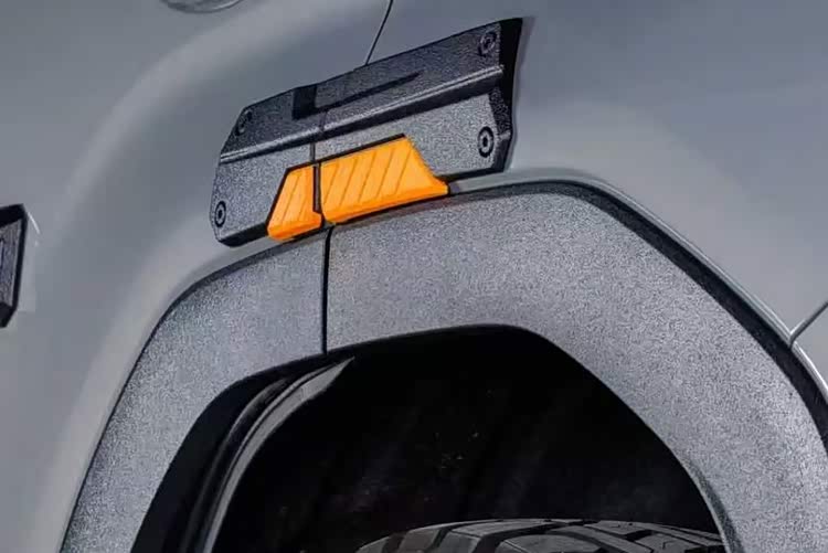 可以看到,该车还升级了定制化的放脱圈轮毂,并且搭配了来自东洋的R/T轮胎,从而提升非铺装路面的抓地力。