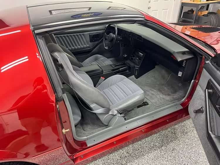 而让它身价倍增的,是近乎“出厂即封存”的极致车况。1987年,它从北卡罗来纳州温斯顿塞勒姆的Modern Chevrolet 4S店交付给首任车主,随后便被送进恒温车库,开启了长达37年的“沉睡”时光。104英里的里程,大概率只是从经销商到车库的距离,此后再也没真正上过路。如今它的状态,用“ showroom fresh”形容毫不为过:深邃的红色原厂车漆依旧光泽饱满,没有一丝划痕或褪色;原厂轮毂与轮胎保持着全新状态,胎毛或许都还在;内饰的灰黑配色座椅、中控台、门板,没有任何使用痕迹,塑料件的光泽感依旧,仿佛下一秒就能开出展厅。
