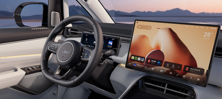 对比外观,吉利银河V900的内饰设计布局上更有中国品牌的风味,15.4英寸的中控屏内置Flyme Auto 2系统,提供海量生态应用,娱乐性和功能性方面无需担心。