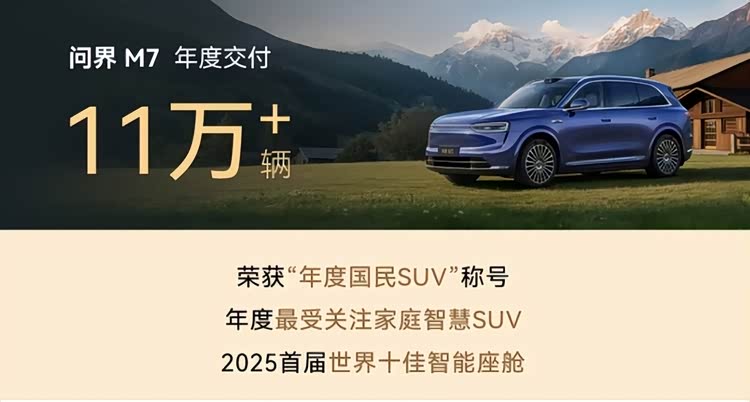 此次权威认证,为全新问界M7过去一年赢得的广泛赞誉增添了最具说服力的技术背书。回顾2025年,问界M7系列以年度交付超11万辆的强劲势头引领市场,获评“年度国民SUV”和“年度最受关注家庭智慧SUV”,其搭载的智能座舱系统凭借卓越体验,入选行业权威的“2025首届世界十佳智能座舱”榜单。从销量冠军到奖项连连,再到如今的极寒安全认证,全新问界M7正以全方位的卓越实力,树立智慧SUV的价值新标杆。